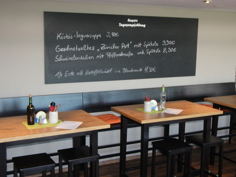 Der Hell gehaltene Gastraum vermittelt nicht nur durch liebevolle Dekorationen – passend zu den verschiedenen Jahreszeiten – ein besonderes Ambiente. Vom Gastraum aus hat man einen einzigartigen Einblick in das Stadion – der Heimspielstätte der SpVgg Unterhaching.